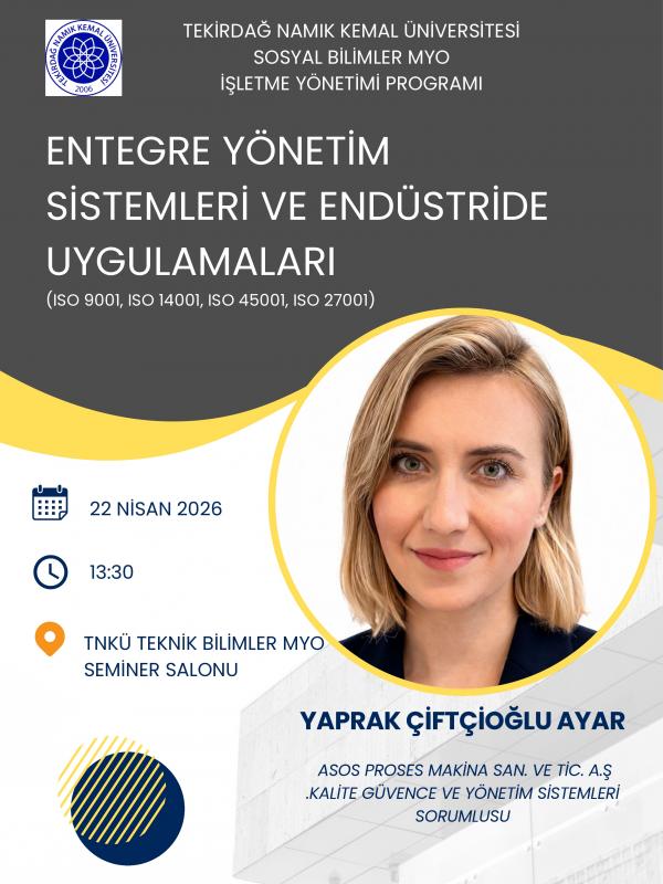 Genç İşletmeciler Topluluğu ve İşletme Yönetimi Programı işbirliği, TNKÜ Kariyer ve Uygulama Merkezinin desteği ile düzenlenen etkinliğe tüm öğrencilerimiz davetlidir.